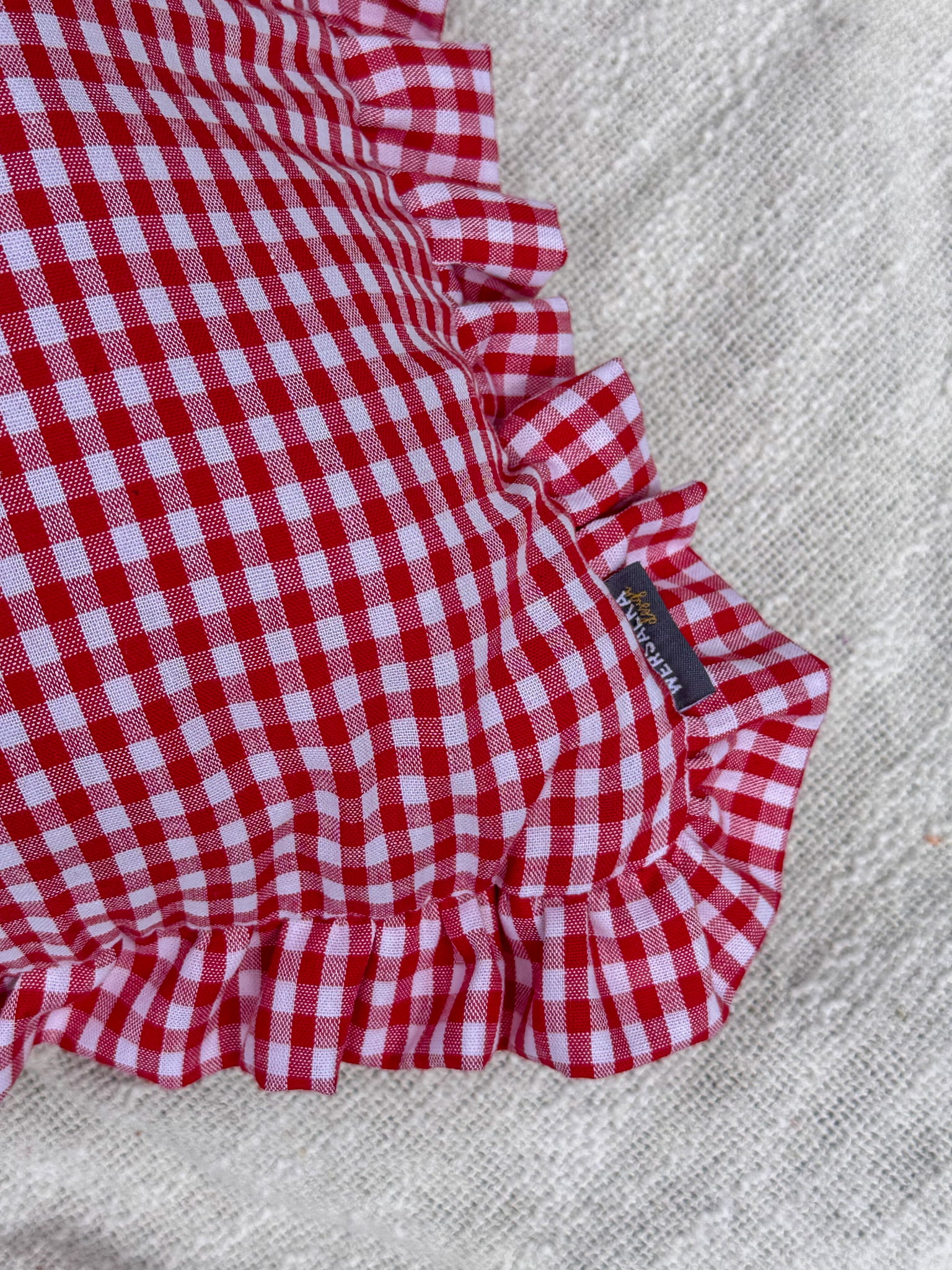 Poduszka z biało-czerwoną kratką i falbaną 40x50 cm - z wypełnieniem