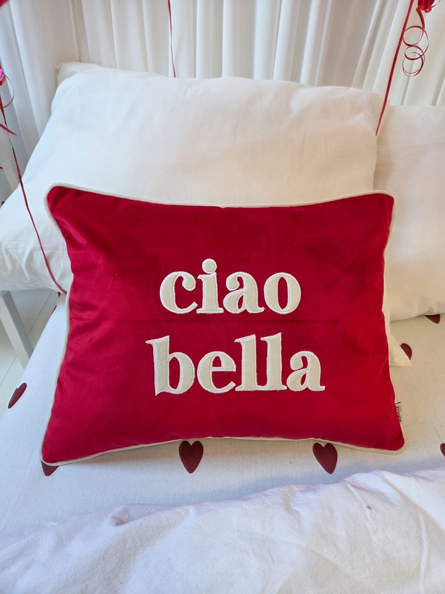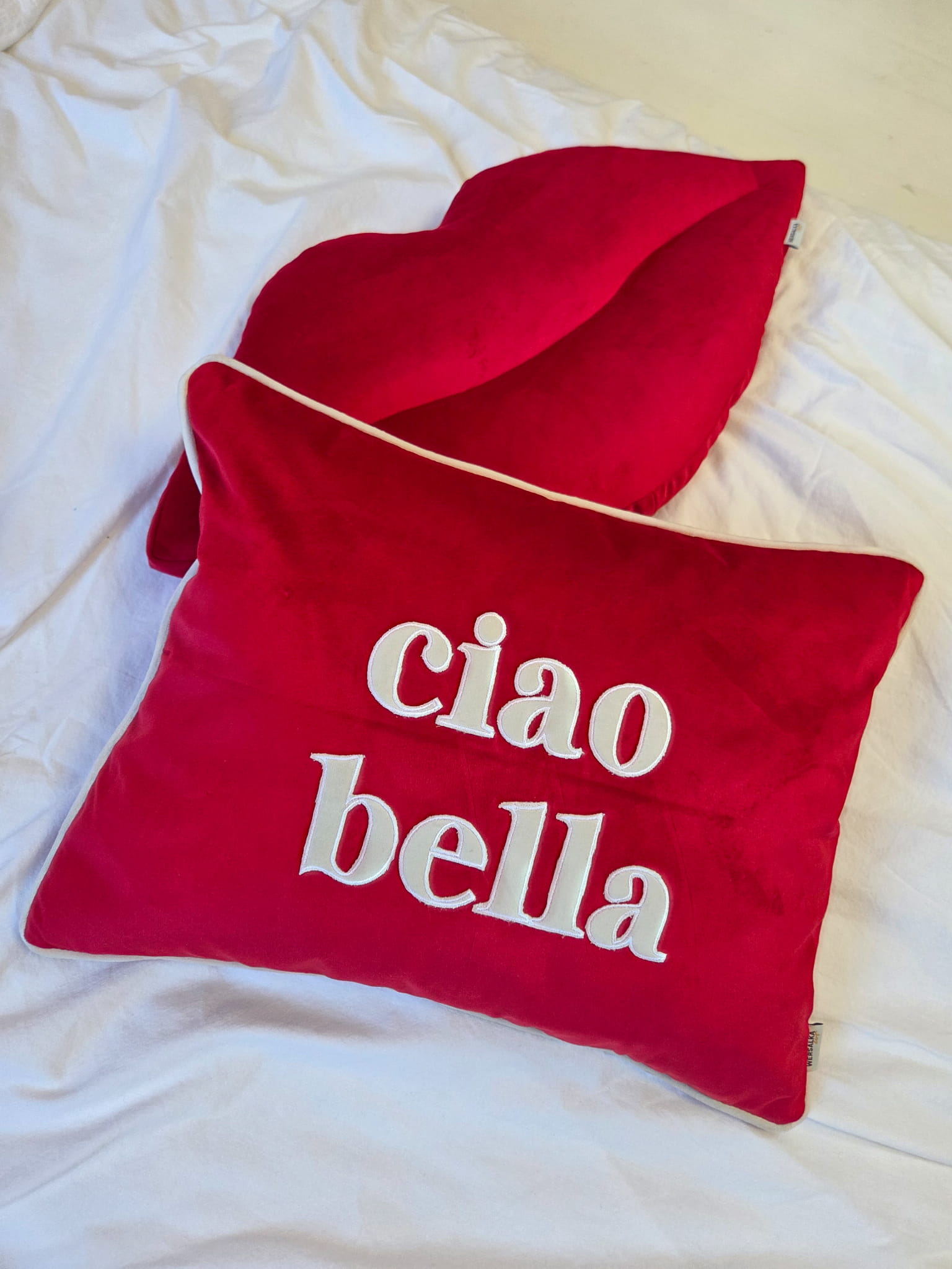 Czerwona poduszka „BELLA CIAO” – welur