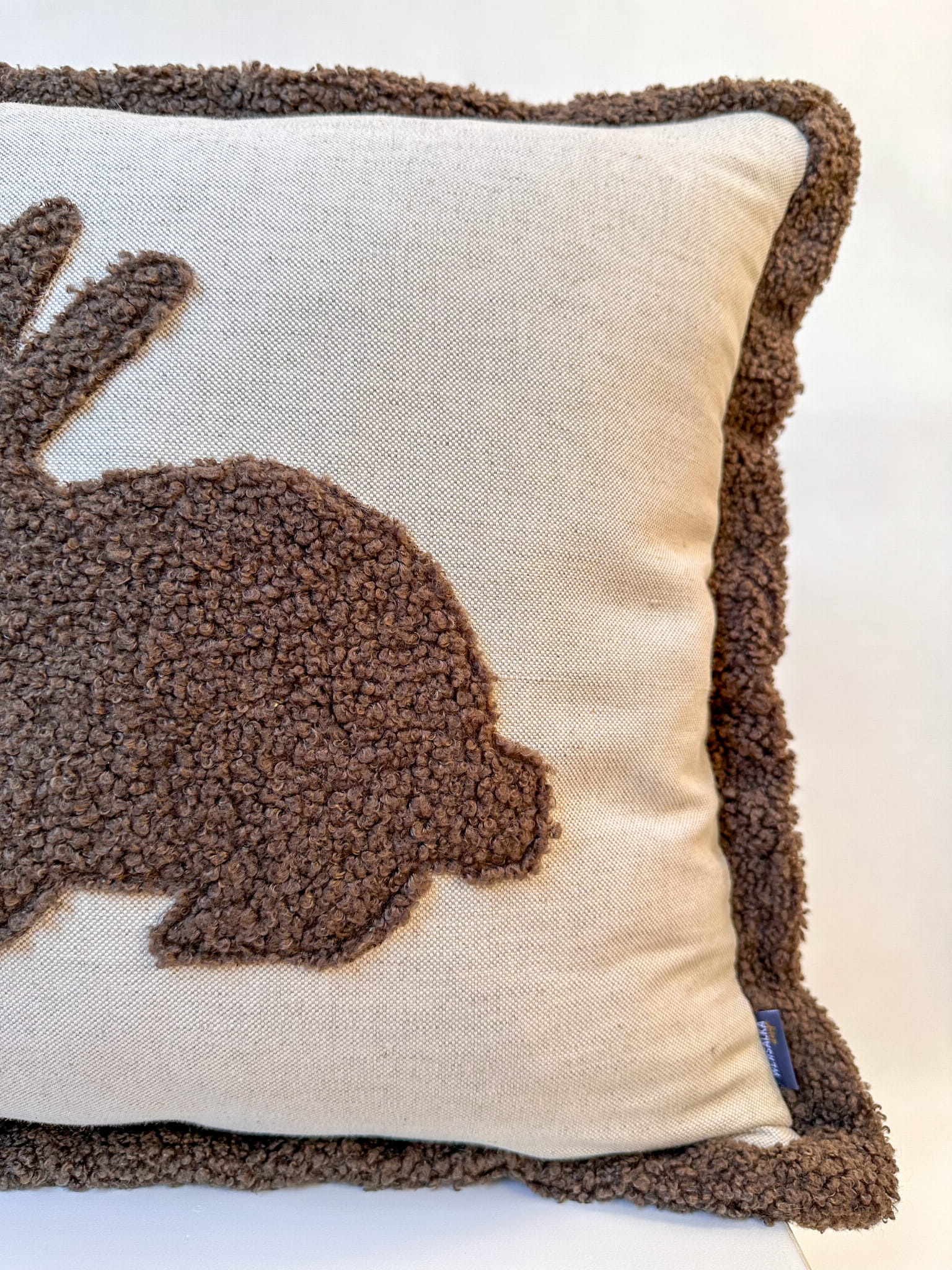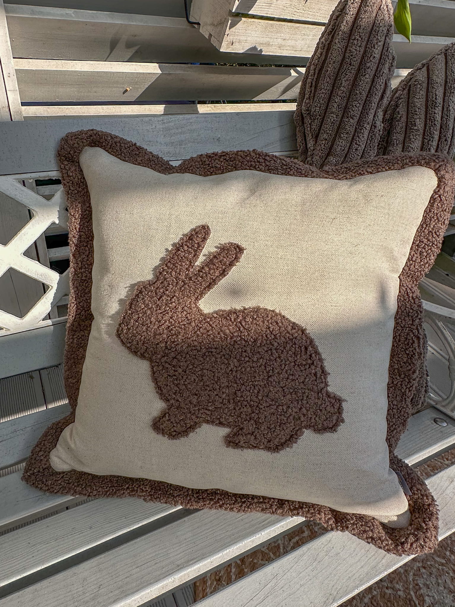 Nasza poszewka z naturalnej bawełny z uroczym brązowym zającem z boucle to idealny dodatek do każdego pokoju. Zaproś do swojego domu odrobinę natury i przytulności.